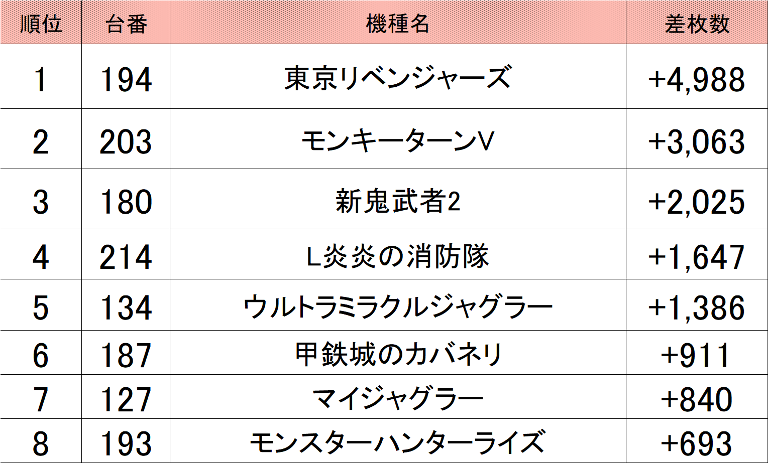 新鬼武者2⚔が2千枚overでランクイン!